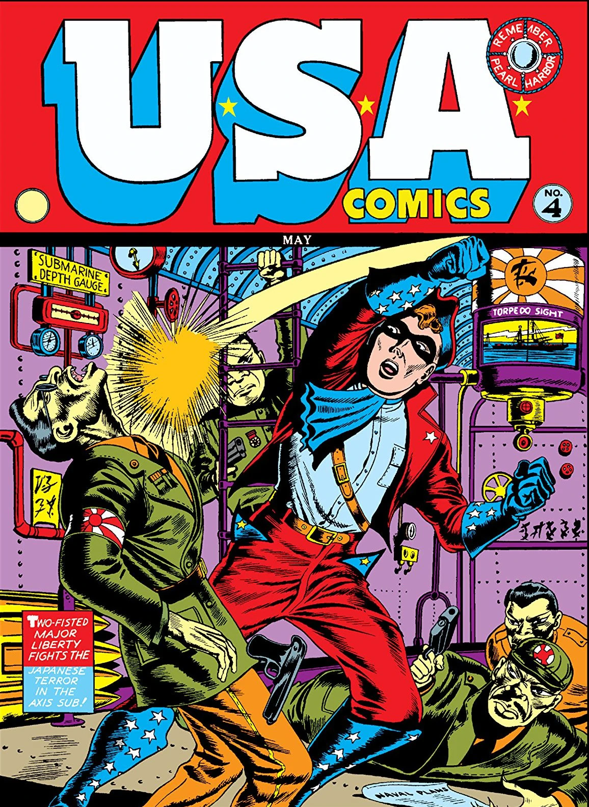 As Major Liberty fights the Nazi's he's joined by Herman who came running after hearing the commotion. Attempting to flee, the trio find that the storm outside has caused a nearby river to flood. They spot an approaching boat, hoping it to be a rescue ship. They are disappointed to find that it's really a boat full of Nazi spies who attempt to shoot them, winging Herman as they flee back into the house. Inside they are confronted by Dr. Drew who is armed with a machine gun. Major Liberty manages to knock the weapon free from the traitors hands and uses it to gun down the spies who have are entering the house.