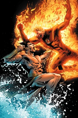 Namor lays helplessly on the ground but refuses to surrender. He stands, raising his hands to the air causing the sky to turn black. A huge being made of water appears above the city, trident in hand. Namor scoffs at the Fantastic Four, revealing his power to the world. Sue asks Namor what do they have to do for him to just go away. All Namor asks for is a deep kiss with Sue, right there in front of her boyfriend. As it is a simple request, Sue kisses the Atlantean as Grimm holds Reed back. Namor grins at Reed and tells him that Sue "meant it" before flying off, leaving the city.