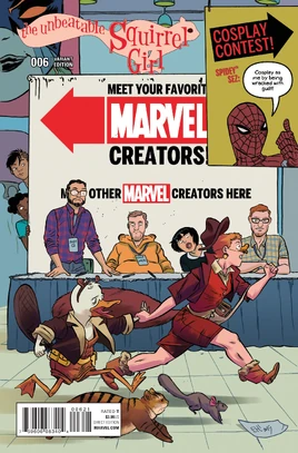 • Will they fight over a trivial misunderstanding? Will they band together against a common enemy? Will Squirrel Girl say “duck!” to mean “lower your head” but Howard will misinterpret it as a call for his attention, leading him to get hit on the head by something?