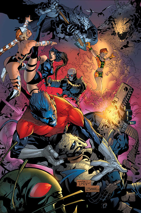 Over the city, the Blackbird is being escorted by one of the O*N*E Sentinels, as Val Cooper accompanies the X-Men inside. Then Krait attacks. Nightcrawler, Psylocke and Cannonball head outside to deal with him, while Bishop handles the Sentinel, using grappling hooks to stop it falling onto the city. Cannonball tries fighting Krait, but is warded off by rail-gun fire from Warshot, who is quickly disabled by the Sentinel, to the admiration of a small child watching.