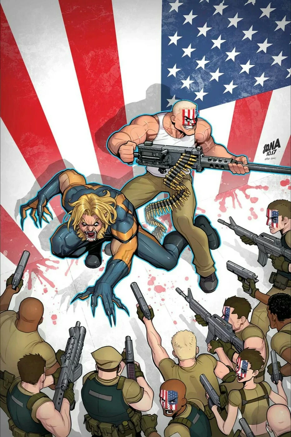 • Sabretooth and the original Nuke--surrounded by the Nuke Platoon!