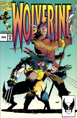 While they are explaining things to the two androids, Man-Killer Wolf has returned to his camp and is confronted by the Adversary. The Adversary mocks him for his failure but heals him none the less and possesses his body so that he can participate in killing Wolverine and Forge. Now in a demonic form, Man-Killer Wolf flies to Wolverine and Forge's hut and attacks the two mutants and androids head on. Forge blasts Man-Killer Wolf setting him ablaze and sending him fleeing toward a nearby waterfall. When Elsie-Dee and Albert attempt to accompany Wolverine and Forge in their pursuit, Logan refuses and tells them to keep an eye on the Siksika for them. Elsie-Dee agrees, and when the Siksika demand that Albert walk a gauntlet, he does so -- easily able to walk through their attacks unharmed -- and learns their language. Reaching the end of the gauntlet he takes a ceremonial sword of a warrior chief and is named the new leader of the Siksika. Just then there is a bright flash of light at the waterfall where Wolverine and Forge had chased Man-Killer Wolf and Elsie-Dee, Albert and the Hunter in Darkness decide to go and check it out. Arriving there they find no trace of Logan, Forge, or the Adversary.
