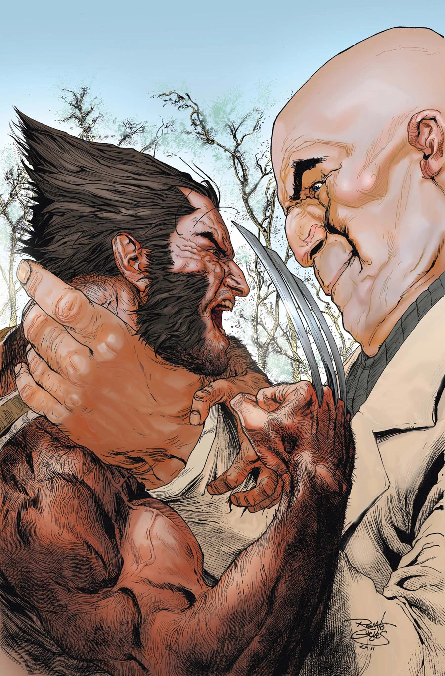 New York City, Logan & Melita get hot dogs for breakfast. Meanwhile, a sinister meeting goes down between the Kingpin (who is in it with the Hand) and the Yakuza. Then a special ops team hopes to keep the head of the Yakuza (Mr. Takenaka) alive. Turns out somebody murdered the Silver Samurai (Hellverine) and the Yakuza blamed the Hand. Kingpin, in his usual mocking tone, denies the allegations and tensions rise. Suddenly, two redneck brothers (The Buzzard brothers; whom made a pact with the Hand) who shoot bones for bullets, have somehow acquired superpowers and begin killing the Kingpin and Yakuza muscle. About this time Wolverine enters and claws are released. The special ops team rushes in, gets everybody into a van and makes sure the head of the Yakuza (Mr. Takenaka) gets on a private jet back to Japan. Turns out that Wolverine knows the head of this team and that somebody is trying to push Yakuza and the Hand into a war. In mid-air, the head of the Yakuza is ripped from the jet by Sabretooth and sent plummeting to his death.