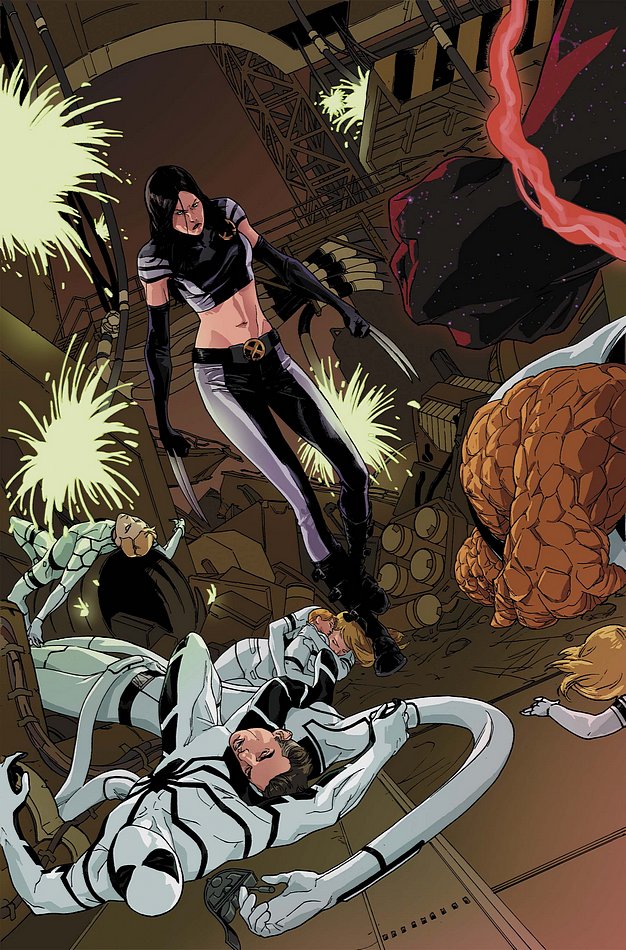 X-23 and the FF finally meet the new face of Chaos! With the world turned upside down, X-23 and her new teammates must find a way to work together to stop it before it’s too late – but what message does Chaos bring X-23 about her future, and can she bear to destroy it before she finds out?