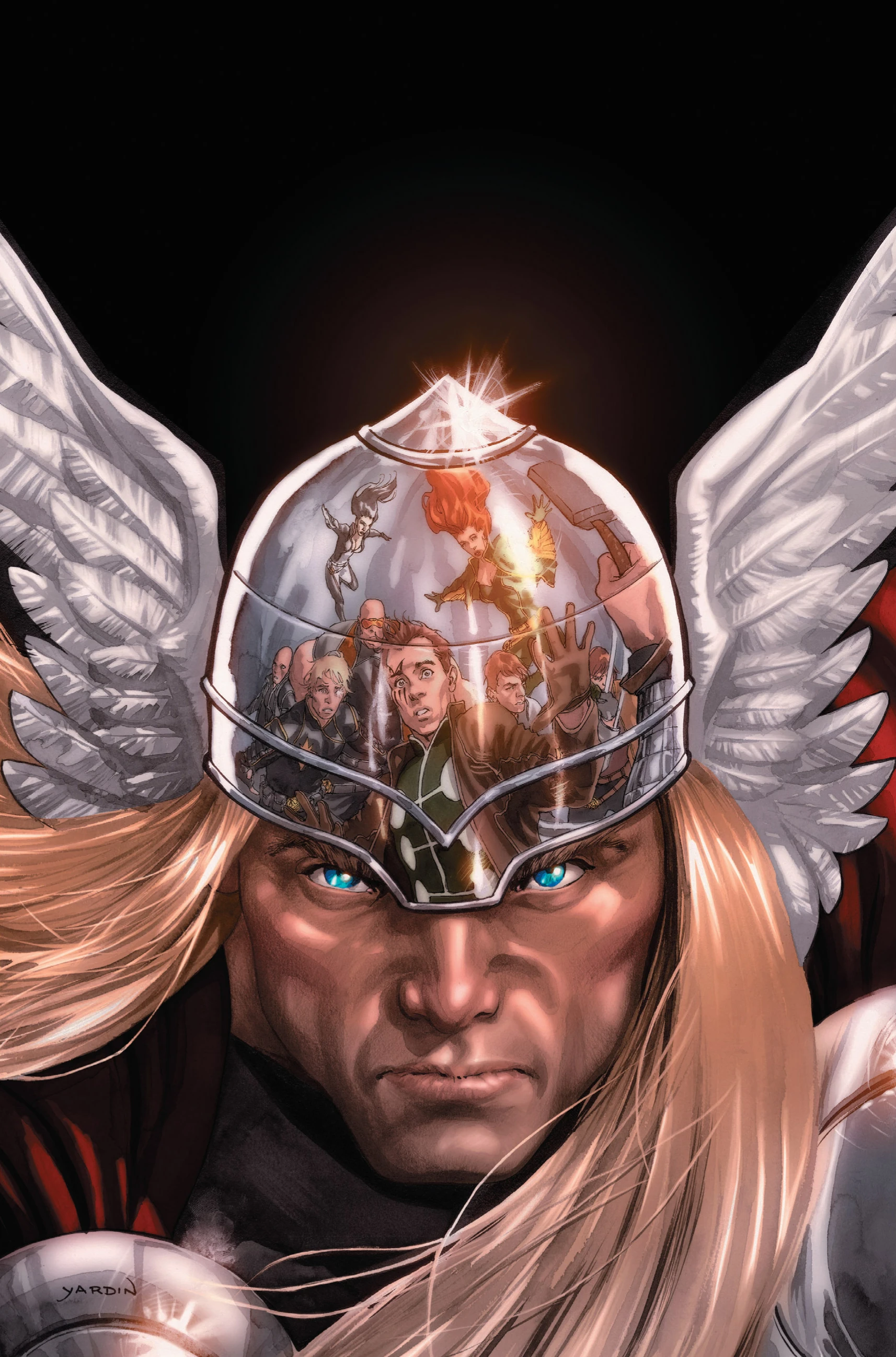 On the sidelines, Hela muses that Thor has always been one for lost causes. Madrox then cuts in that perhaps this whole ordeal wasn't about Pip, but about Thor. Hela feels insulted and finally decides to end the Multiple Man -- permanently! Madrox then gives the signal to Darwain, who imposes himself between Madrox and Hela. He absorbs her power, becoming a god of death and turning Hela's legions upon her. X-Factor takes advantage of this distraction to escape, finding Layla on the other side, who hauls them all out of Hela's lair. Once they are safe, Madrox asks Darwin if he's okay, to which the answer is yes, "dead sure." The issue ends with a closeup shot of Darwin's eyes, both with skulls in place of pupils.