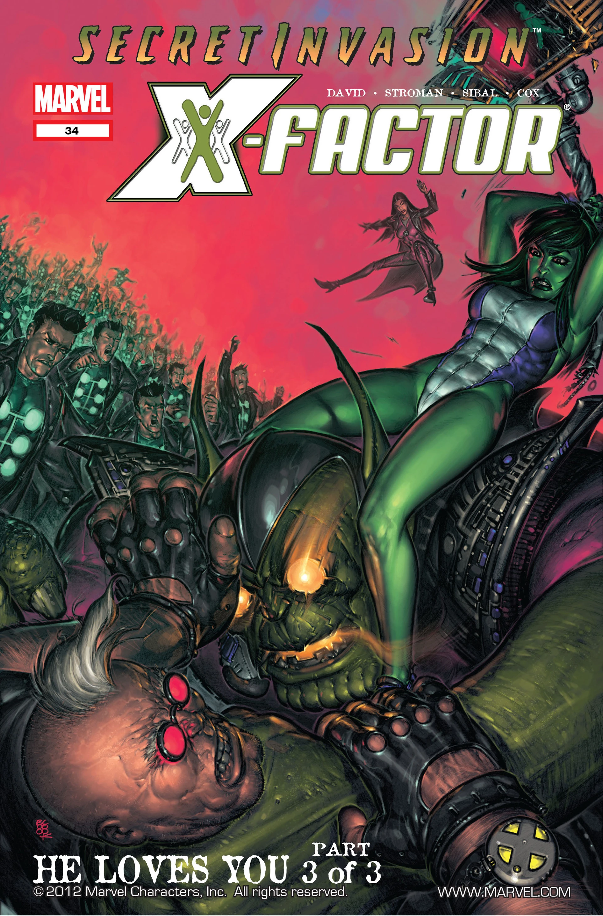 X-Factor is in pursuit of Darwin, whose father is looking for him. She-Hulk and Jazinda are in pursuit of Longshot, who may hold the key to defeating the Skrull invasion. With Darwin and Longshot on the run, neither of them wanting to be found, you'd just assume that X-Factor and She-Hulk will work together smoothly to accomplish both their goals. But what fun would that be?Notes