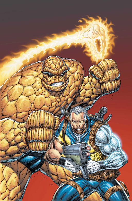 Cable, Shatterstar and the crew make an uneasy alliance with figures from their past as Skornn strikes N.Y.C.! Domino uncovers a terrible revelation that threatens to destroy the team and her relationship with Cable! Guest-starring the Fantastic Four!