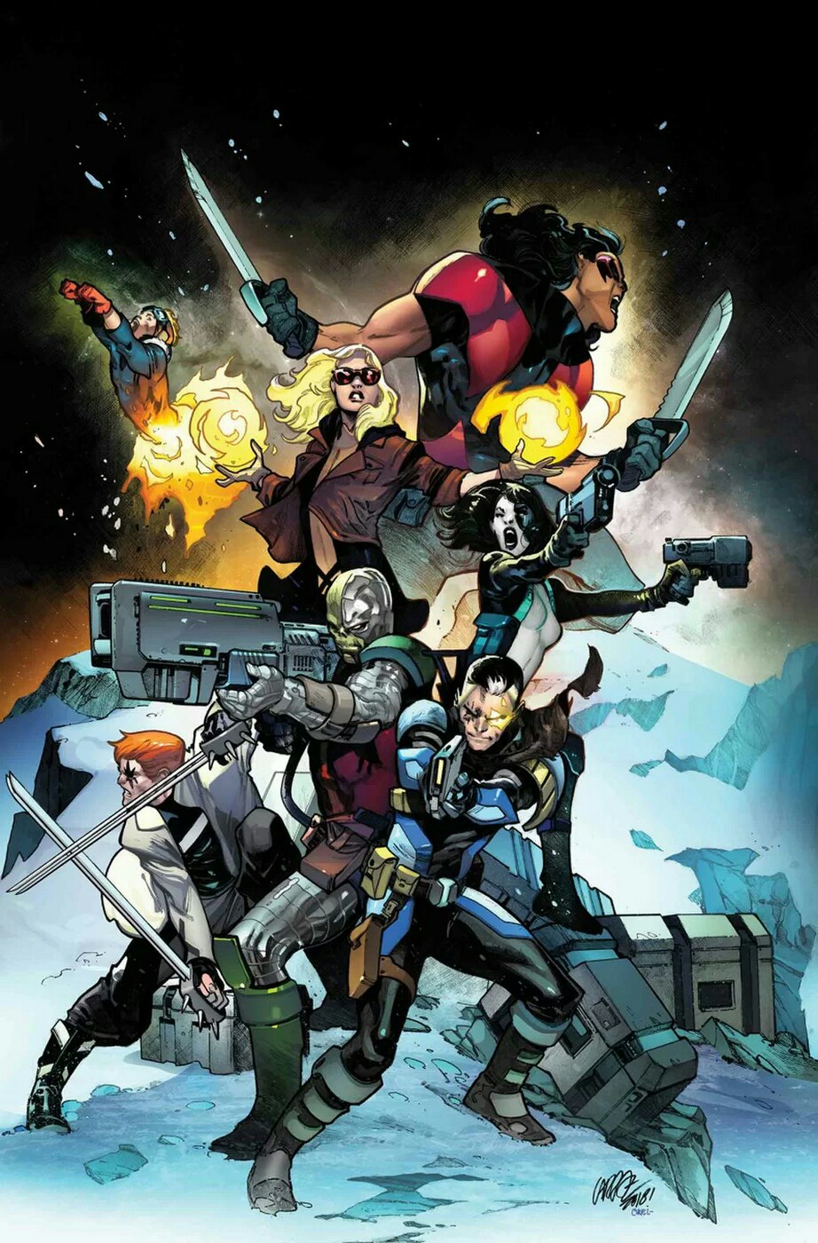 Cable is dead…and now, the original X-Force team of Domino, Cannonball, Shatterstar, Boom Boom and Warpath. must hunt down the murderer of their former leader! The mutant militia are hot for blood…but when their target is the time-traveling younger version of their fallen mentor, is there a line they absolutely cannot cross? And what does Deathlok have to do with all of it? From Ed Brisson (EXTERMINATION, OLD MAN LOGAN) and Dylan Burnett (COSMIC GHOST RIDER), comes an all-new, high-octane mutant adventure! A reckoning will come!