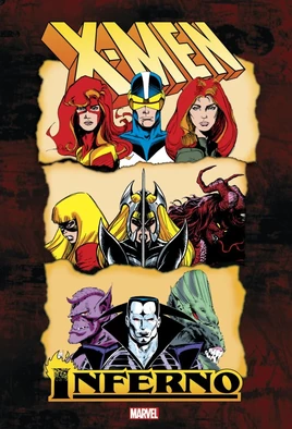 The entire incendiary epic in one red-hot hardcover! When mad geneticist Mister Sinister and the demonic N’astirh set their respective master plans in motion, an Inferno engulfs the Marvel Universe! The flames are fanned as Sinister’s Marauders attack the X-Men, while a demonic horde preys upon the helpless, horrified populace of New York — and Illyana Rasputin battles for her soul! But it is Cyclops’ estranged wife Madelyne Pryor, now the Goblin Queen, who might turn the Earth into a hellish wasteland! The X-Men, X-Factor and New Mutants face their most harrowing ordeal — and the fires are fought by Spider-Man, Daredevil, the Avengers and more!