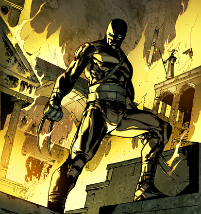 - 可伸缩的骨爪:戴肯的前臂有三根可伸缩的爪子,两根在他的手背,一根在手腕。他的爪子看起来是黑色的,而且质地粗糙。这些爪子比普通人类的骨头可坚硬多了,可以轻易切开骨和肉,捅破像是钢铁侠的钢甲那样的金属。